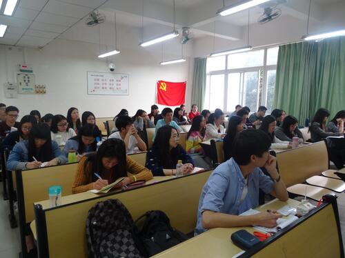 本网讯2016年3月29日星期二下午2:30,厕所偷拍 副教授刘雪松在文新楼205教室讲授了第二期入党积极分子培训班的第二课——《挑战与使命——两代大学生的对话》。