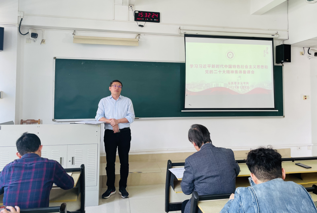 学院党委书记罗明星教授强调,学习宣传贯彻党的二十大精神是当前和今后一个时期的首要政治任务。作为马院教师,更要学习好、宣传好、落实好党的二十大精神,切实按照“八个相统一” 和“六个要”的要求,推动党的最新理论成果进教材、进思政课堂、进学生头脑,以思政课建设的优异成绩,为学院和学校的高质量发展多作贡献。