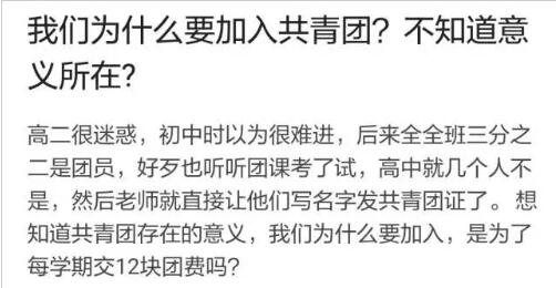知乎上有位同学提问:“我们为什么要加入共青团?”