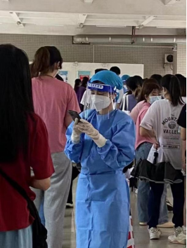 沈童欣同学参加学校组织核酸检测的志愿活动