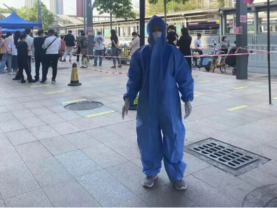 防疫无小事,党员当觉悟。虽然才术后不久,但社区征集核酸检测志愿者的时候,我还是积极参加了。我们穿着密封的防护服,带上隔离病毒面罩,指引群众排队、扫码、出示健康码等,保证社区的全员核酸检测有序、安全和科学进行。有些老人家不会使用手机,我们就耐心地帮忙扫码和填写资料。对于老人、孕妇、小孩以及残障人士,我们设置爱心通道,使其快速、便利地完成核酸检测。天气炎热,几个小时下来,我们已满身是汗,嗓子沙哑,腿也很酸,但是耳边常能听到群众说“谢谢,辛苦了”,这时我们就知:抗疫虽艰,人间值得;不能躺平,生命至上!广州加油,广州必胜!