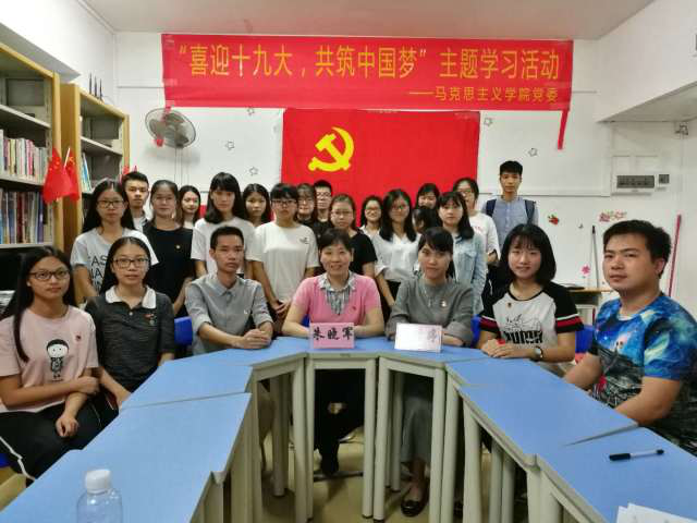 全体学生党员、入党积极分子相约B6五室一站,开展“喜迎十九大,共筑中国梦”主题学习活动。本次主题学习活动由朱晓军党委副书记主持,学工办辅导员姚倩婷老师、兼职辅导员江家丽、吴金年、谢家慧等老师也参加了本次学习。