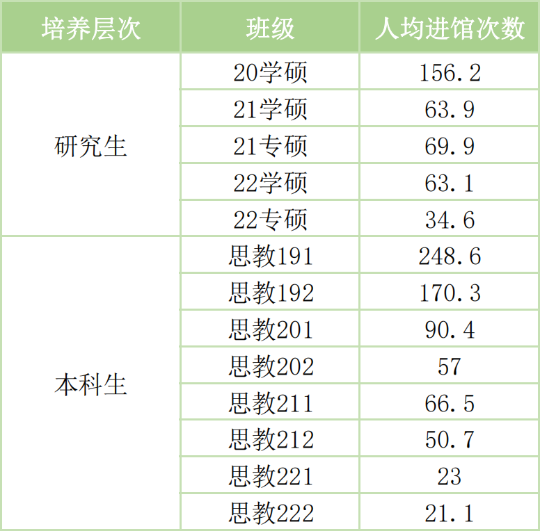 2022年度厕所偷拍 学生共进馆37751次,人均进馆78.2人次,同比增长23.1%。其中本科生80.8人次,研究生67人次。