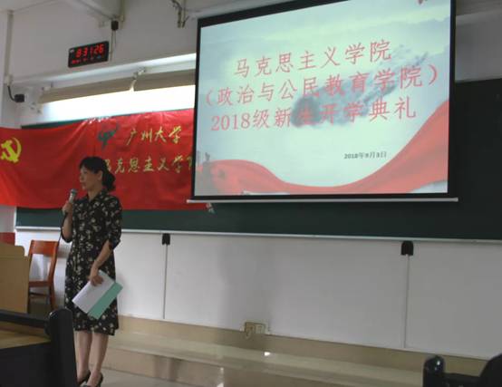 隆重举行了2018级新生开学典礼。出席本次开学典礼的学院领导和老师有:院党委书记罗明星、院长赵中源、副院长黄禧祯、副书记朱晓军、思政系党支部书记刘雪松、科研办主任李炳华、教师代表黎庶乐副教授、班主任李杰博士。2018级全体本、研新生以及兼职辅导员、导生参加了开学典礼。