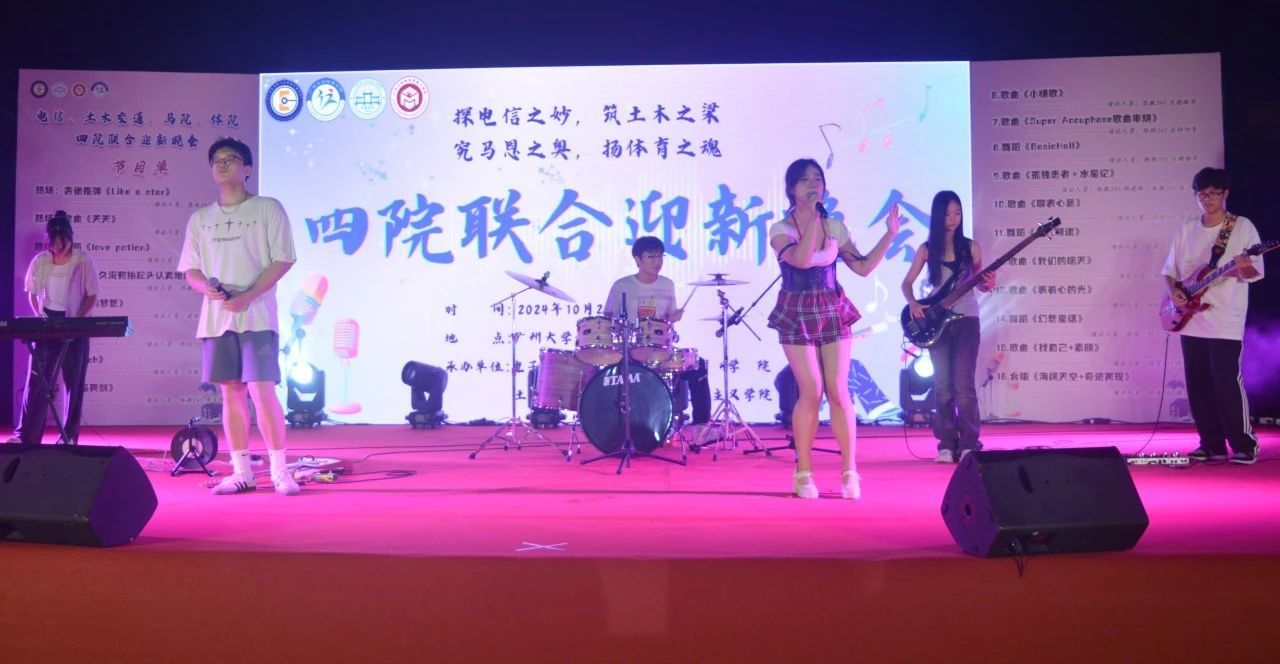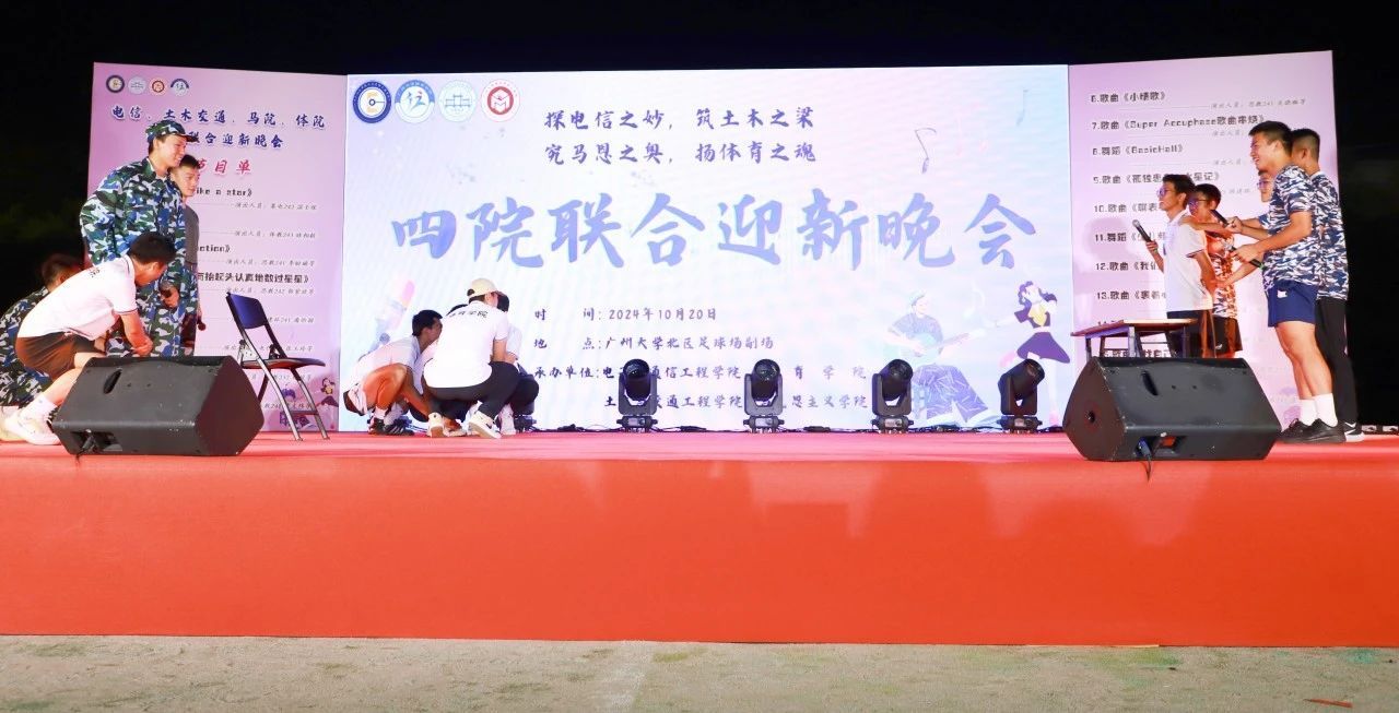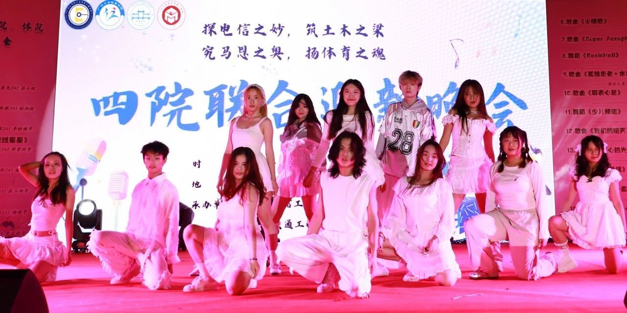 、电子与通信工程学院、土木与交通工程学院以及体育学院在北区田径场副场举行了以“探电信之妙,筑土木之梁,究马恩之奥,扬体育之魂”为主题的四院联合迎新晚会。