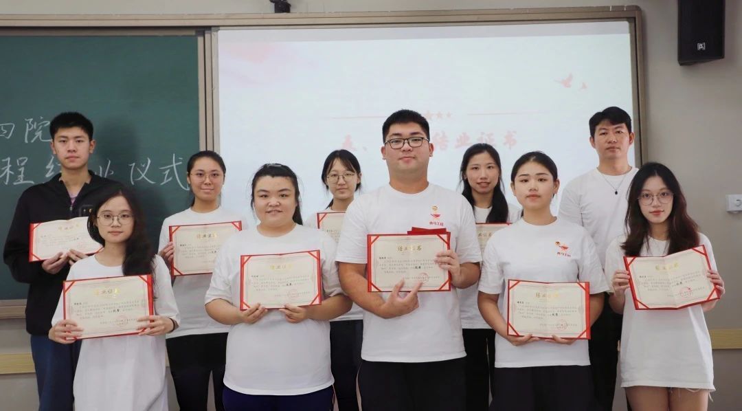 党委副书记梅淑宁老师、体育学院团委书记王超老师、音乐舞蹈学院团委书记张新新老师以及外国语学院团委副书记徐慧老师共同出席了结业仪式。