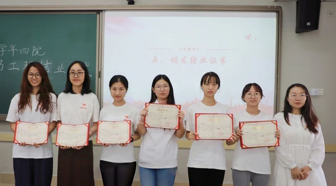 党委副书记梅淑宁老师、体育学院团委书记王超老师、音乐舞蹈学院团委书记张新新老师、外国语学院团委副书记徐慧老师为青马班学员颁发结业证书。