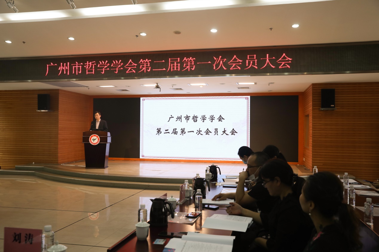图1 新任广州市哲学学会会长张其学教授主持会议