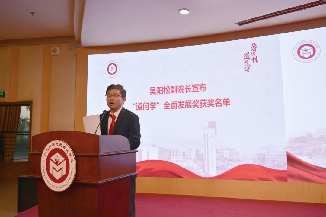本科教育成功的有力例证。未来,他希望有更多同学挑战自我,走到更远的地方,也希望有更多同学留在母院深造,和母院共同发展。在读书奖方面,他强调,读书是学生的天职,读书的积淀是未来发展的能量源泉。“道问学”读书奖的颁发体现了关乎学生长远发展需要的基本导向。在全面发展奖上,他指出,学习是全方位的,同学们要提升综合素质,实现全面发展,成为有情怀、有担当、有理想的大学生,脚踏实地地走向远方。最后,他深情地感召大家,广大马院的发展不仅是每一位老师和学生的共同责任,也是大家走向未来的有力支撑和精神寄托。学院正处新的发展阶段,期待在老师和同学们的共同努力下,建设属于全体马院人的美好未来!