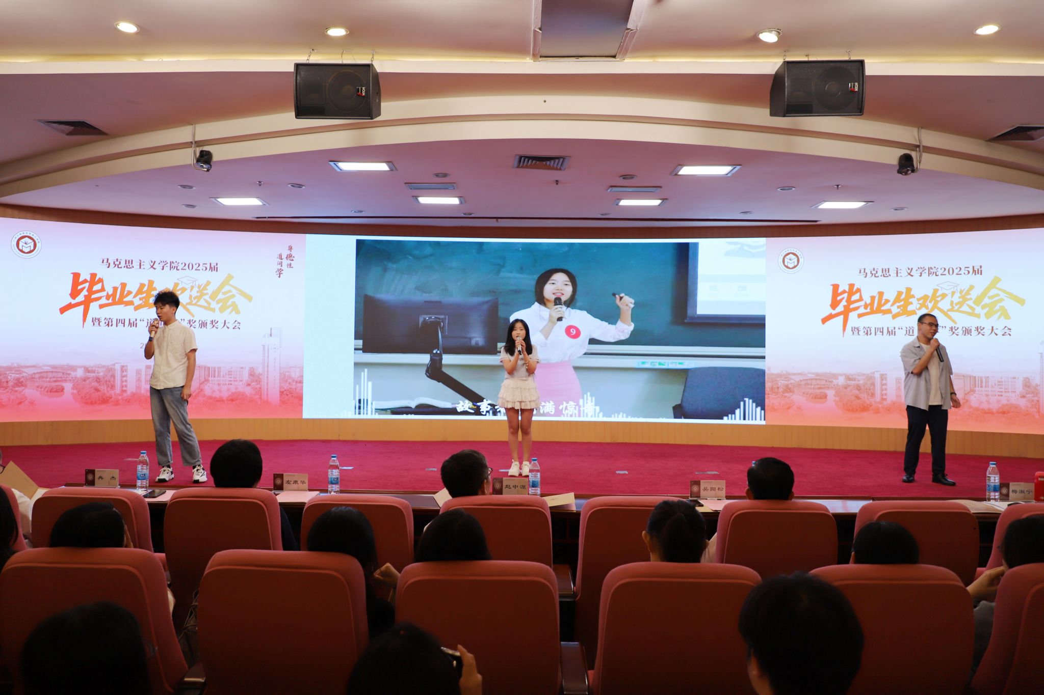 2025届毕业生欢送会暨第四届“道问学”奖颁奖大会在图书馆副楼五楼报告厅隆重举行。学院党政班子成员、系部及行政办公室负责人、导师和班主任代表、辅导员、全体本研学生400余人参加大会。大会由学院副院长冉杰教授主持。
