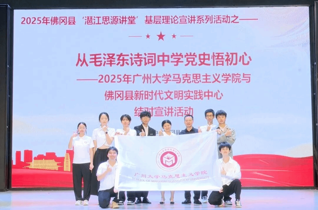 经过近2个月的前期准备,马院的“理论大厨”们带着满满的干货,在清远开启了一场别开生面的“理论大餐”。“大餐”上的“菜品”琳琅满目,既涵盖党史学习教育、新质生产力、精神文明建设等“主菜”,也包含清远革命历程、清远非物质文化遗产等当地“特色菜”。同时,青年理论宣讲团还自编自导了多场情景剧,通过身临其境的演绎,或把观众们带到硝烟纷飞的抗日战场,或带到脱贫攻坚的乡村一线,增强了宣讲的趣味性和感染力,让观众“吃得饱”,更“吃得好”。