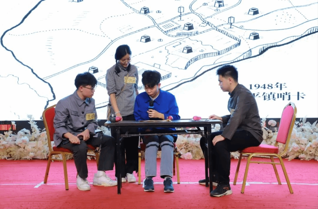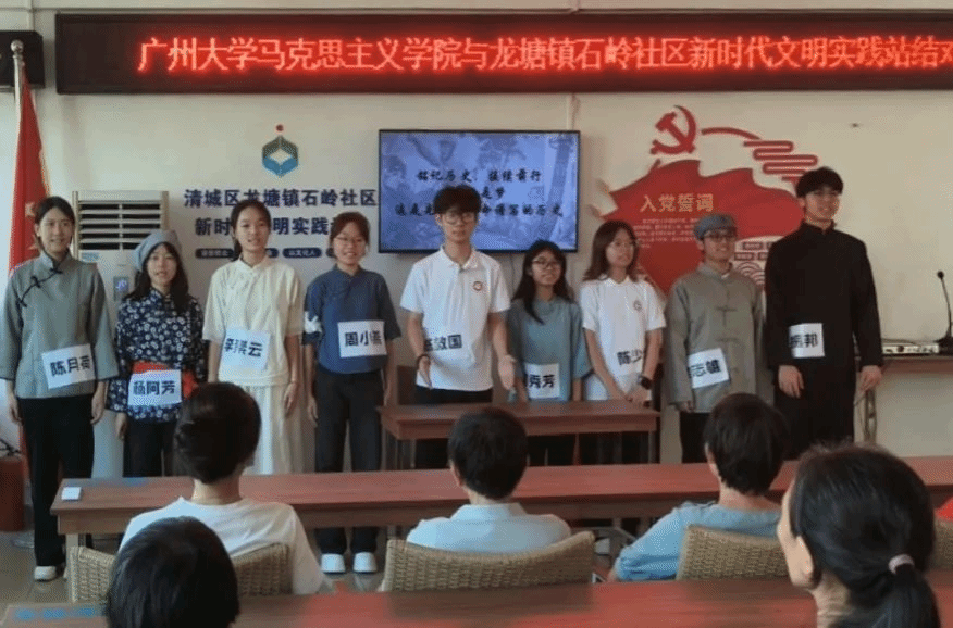 郭紫欣、张雪丽、周俊彤、李华英、蔡琳、陈基翔、李韶涵、莫振炜、陈少兰、邝洋逸10位同学带来的情景剧“清远民众抗日救亡运动”以抗日战争中的粤北会战作为背景,生动再现了清远人民在抗战中挺身而出、不屈不挠的英雄群像,深刻诠释了万众一心、共御外侮的全民族抗战伟力。