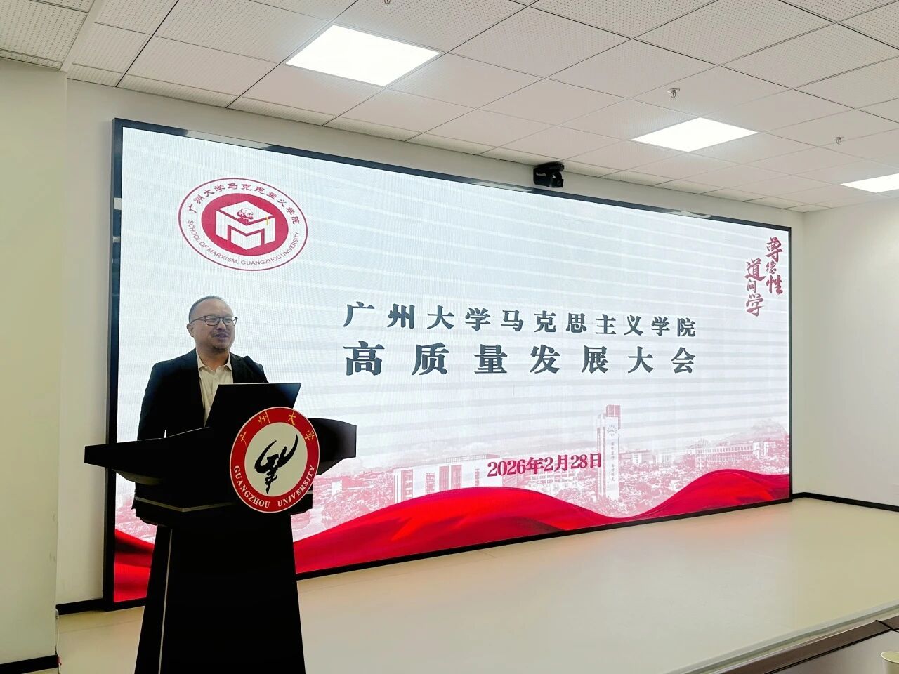 于2月28日召开高质量发展推进大会。大会分“学院大会、分组讨论与任务认领”三个阶段梯次展开,全体教职工齐聚一堂,围绕思政课教学、一流本科专业建设、学科建设与人才培养等核心议题,共商发展大计,共绘发展新篇。