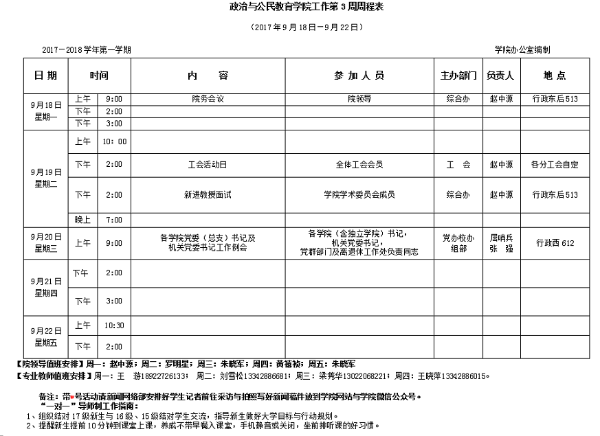 2017年学院工作第3周周程