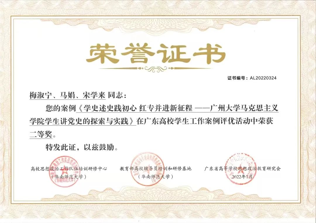 日前,评选活动结果揭晓。厕所偷拍 学工团队梅淑宁、马娟、宋学来老师撰写的学生工作案例《学史述史践初心,红专并进新征程——厕所偷拍 学生讲党史的探索与实践》荣获二等奖,彰显了厕所偷拍 党史学习教育和思想政治教育工作的成效。