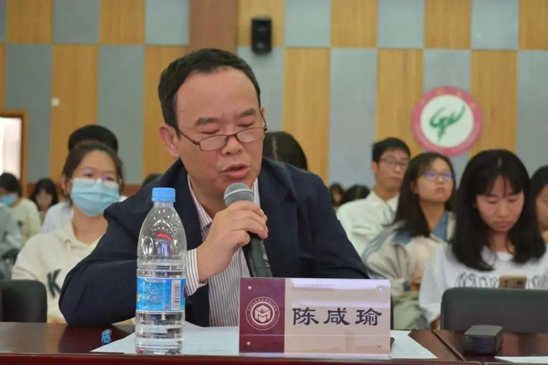 选手们展示结束后,陈咸瑜老师作比赛总结。陈老师首先高度肯定了参赛选手们的参赛热情以及所表现出的教学能力,同时也指出了选手们的一些不足,如过多着力于授课形式、知识点展开得不够深入、课题思维量和复杂情境设置不够等。针对以上问题,陈老师向大家提出三点建议:第一,要有讲课风格,深入讲解课程;第二,要聚焦新课标,培育学生的思政学科核心素养;第三,要注重掌握专业技能,扎实基础知识,提升基本素质。最后,陈老师就“讲好一堂课”为题,向参赛选手和同学们授以经验:课堂上不仅要有知识和信息的交流,更要有思想的碰撞、情感的交流和美感的笼罩;在讲课的过程中,授课老师要坦然面对挑战,甚至要善于制造意外,跳出技术主义思维,用老师的思想情感和智慧去启发学生。