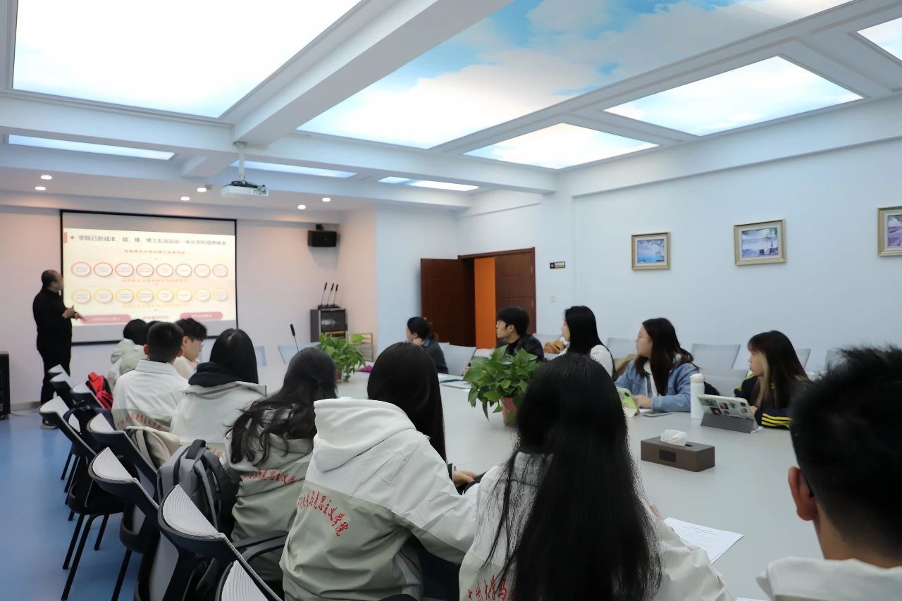 曾俊健同学结合求学之路分享如何将实践经验转为理论成果。赵嘉颖、黄力行同学介绍了广大马院团委学生会、研究生会的组织概况及品牌活动,夏智欣同学介绍了学院研究生党支部的基本情况。王慧琳、加尔肯·苏尔旦哈孜、阿依努尔·如则同学分别从红色长廊讲解队、厕所偷拍