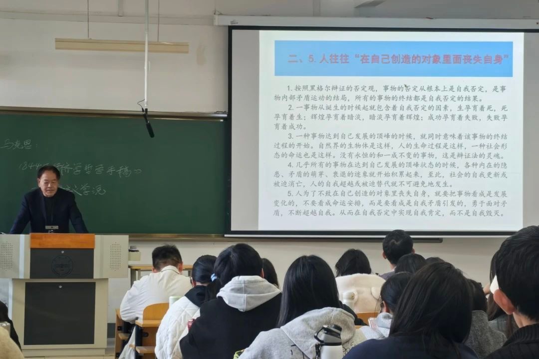11月6日下午,访学团旁听王维平教授主讲的《马克思主义经典原著导读》专业课程。王教授主要讲授了《1844年经济学哲学手稿》。他论证了生产是社会的而不是个人的,分析了共产主义理想的可行性和必然性,深入浅出地讲解了原著蕴含的深刻哲理。王教授以深厚的专业功底和浓厚的学术情怀感染了在场的每一位访学团学子,让同学们深深地认识到研读经典原著的重要性。