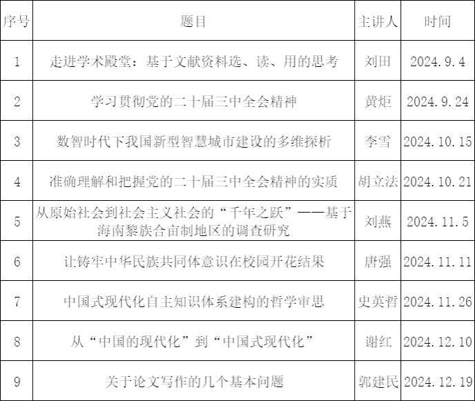 论坛主题涵盖了多个领域,不仅促进了学术交流与合作,还拓宽了学生的理论视野。其中,2场专题讲座带领同学们学习党的二十届三中全会精神,提高了同学们的政治觉悟和理论水平;5场讲座聚焦于学术前沿问题,为同学们提供了理解特定问题的独特视角;2场论文写作讲座为初入研究生学习生涯的同学们讲解了文献资料的检索方法以及论文发表的主要流程。每场讲座的问答和讨论环节,同学们都踊跃参与,充分展现了热情与智慧。同学们纷纷表示,这些讲座不仅让他们接触到最新的学术成果,思维能力和创新精神也得到了激发。