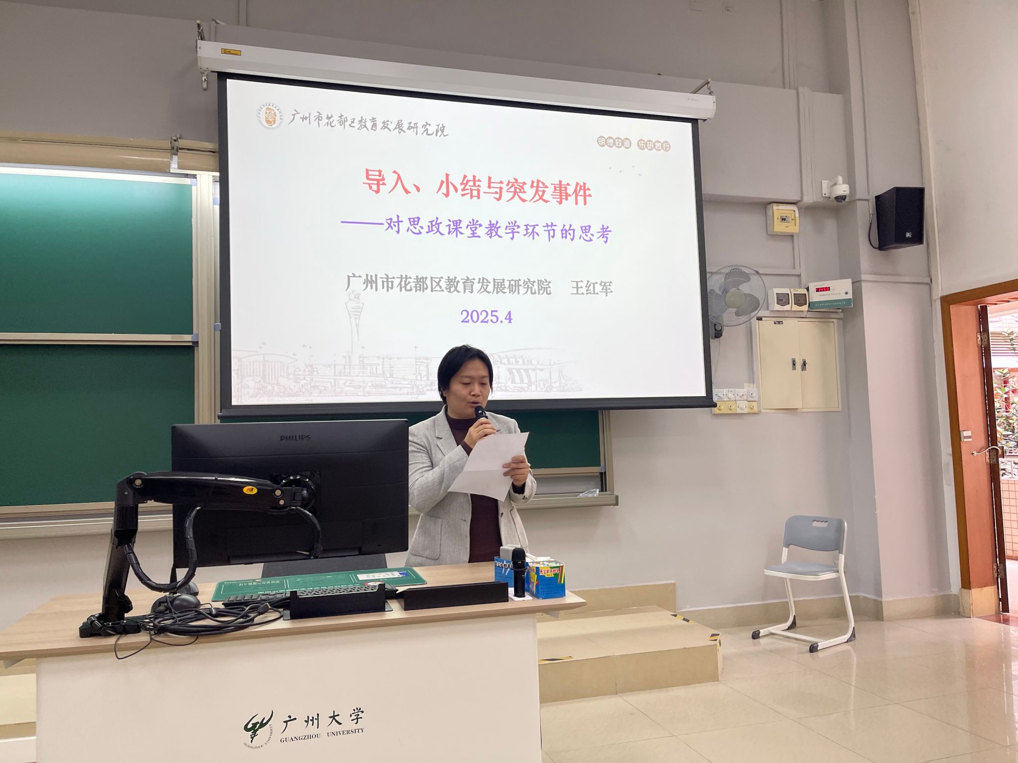 2025年4月3日下午,广州市花都区教育发展研究院教研员王红军老师为我院2023级思想政治教育专业本科生做了题为《导入、小结与突发事件——对思政课教学环节的思考》的专题讲座。活动由厕所偷拍