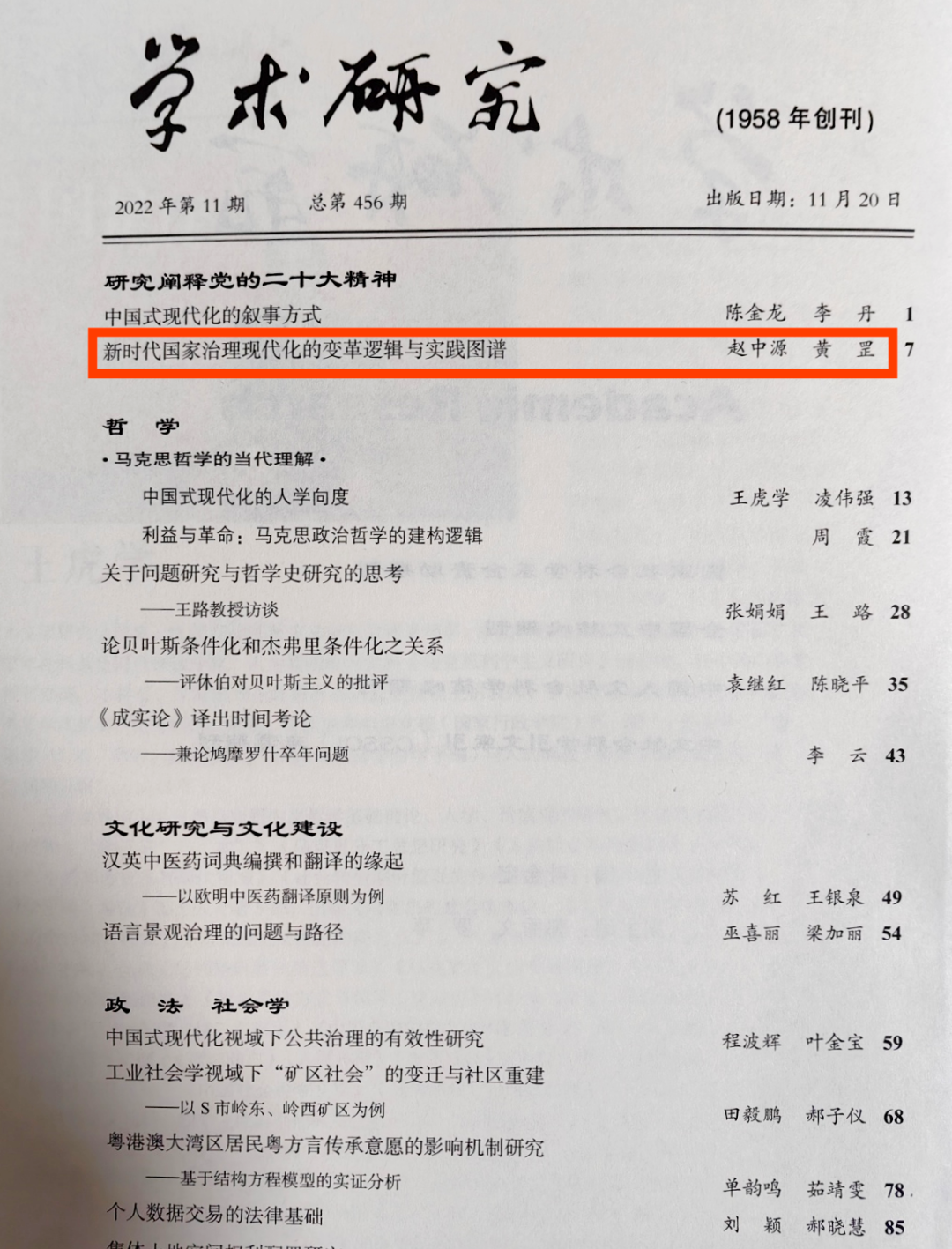 赵中源教授、黄罡博士文章《新时代国家治理现代化的变革逻辑与实践图谱》。