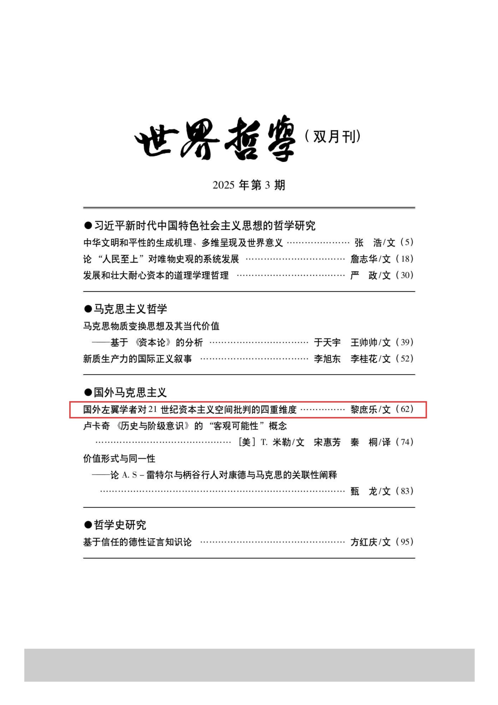 黎庶乐教授论文《国外左翼学者对21世纪资本主义空间批判的四重维度》。