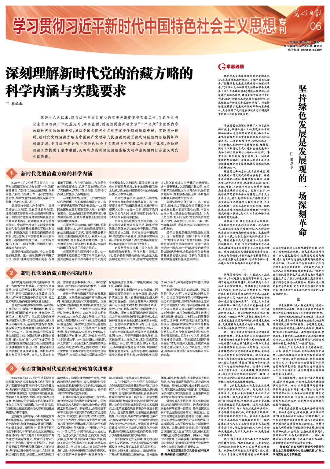 黎庶乐教授理论文章《坚持绿色发展是发展观的一场深刻革命》。